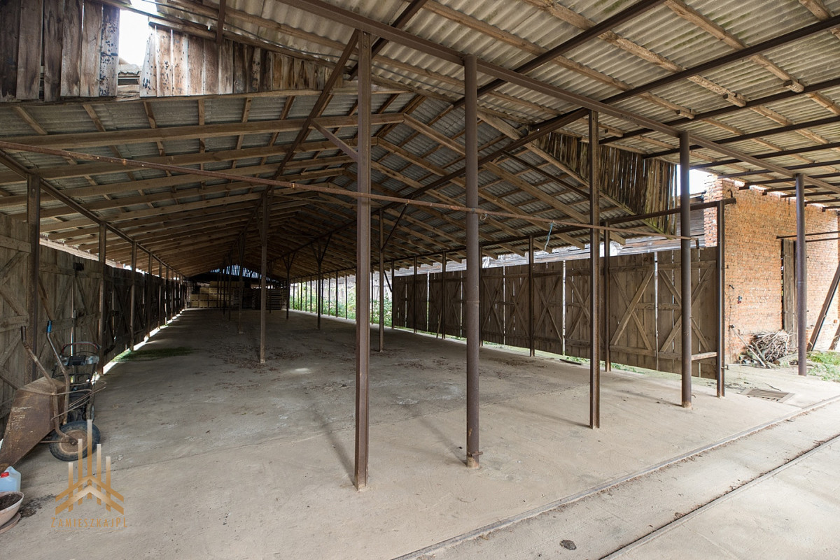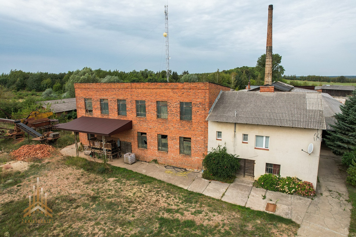 - wyposażony w 15 obiektów budowlanych, w tym: budynek socjalny z funkcją mieszkalną (ok, 120m2), budynek biurowy z garażem (ok.60m2) oraz duża maszynownia w tylu loft`owym