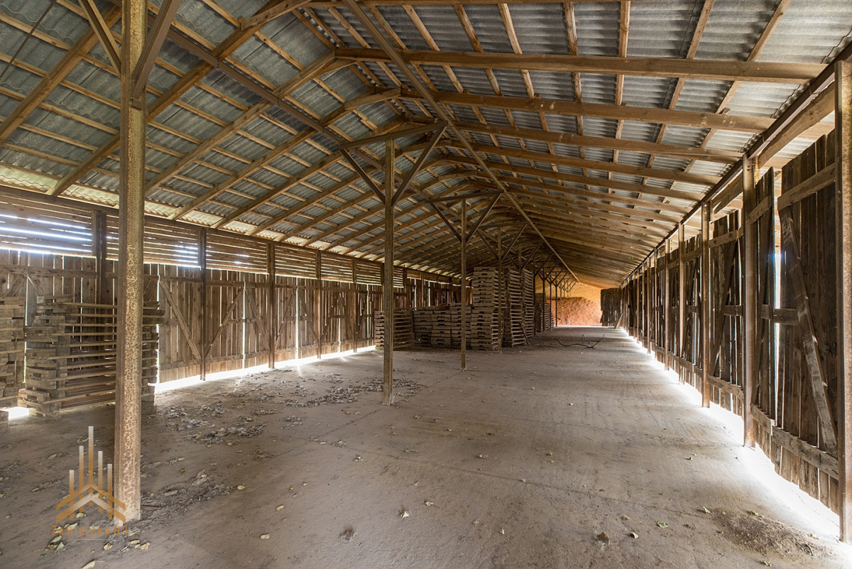 - wyposażony w 15 obiektów budowlanych, w tym: budynek socjalny z funkcją mieszkalną (ok, 120m2), budynek biurowy z garażem (ok.60m2) oraz duża maszynownia w tylu loft`owym